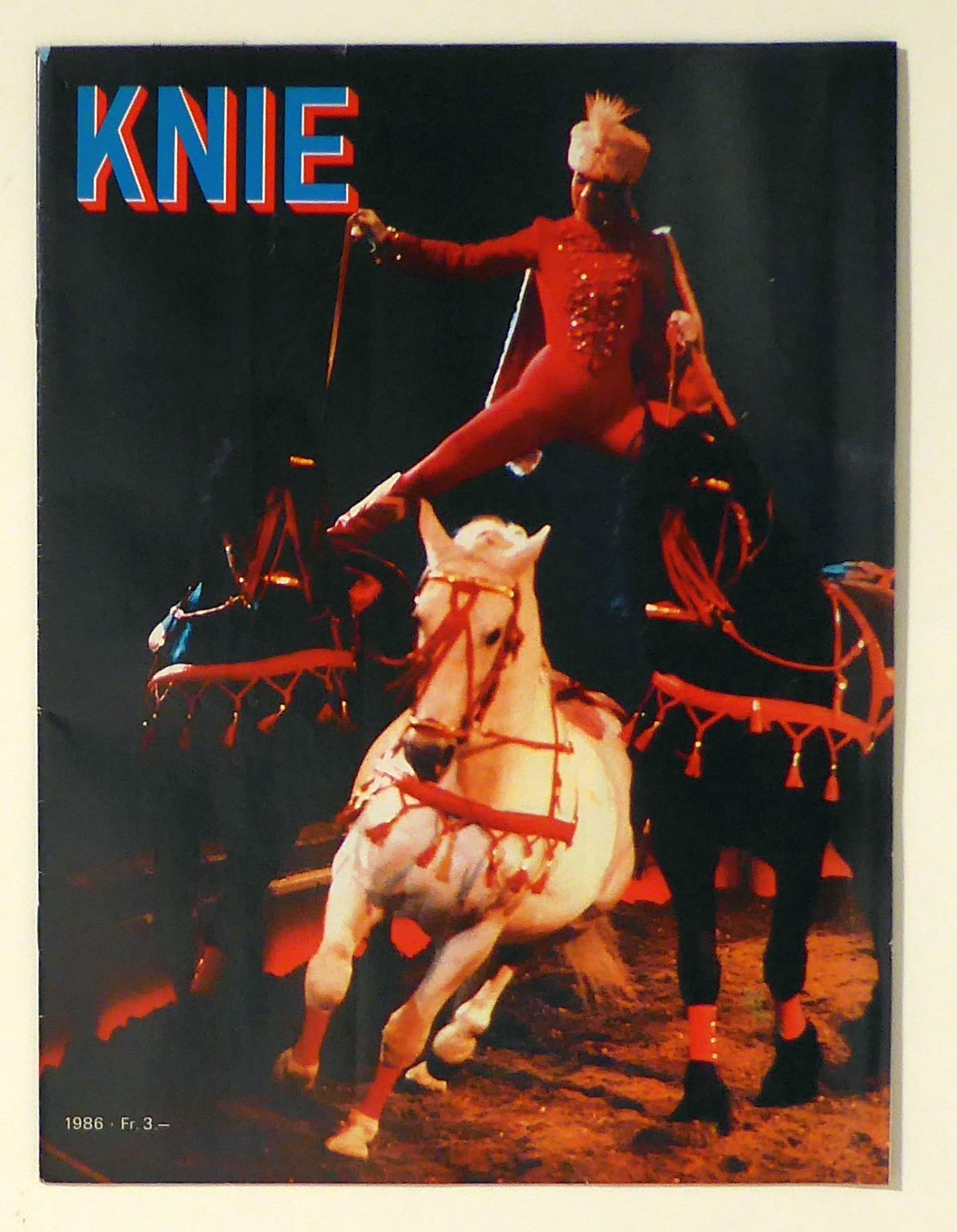 (Illustrierte Circurs-Zeitung): Knie - ein ganzes Zelt voll Circuswelt. Verantwortlich für Text und Bild: Chris Krenger. Rapperswil: Gebrüder Knie, 1986. 39 S., mit zahlreichen farbigen Foto-Illustrationen und einem ausklappbaren farbigen Zirkus-Poster ((Knie Zirkuszelt). Einband: Farbig illustrierter Or.Umschlag; geheftet. Format: 4°. Dreisprachig (deutsch, französisch, italienisch)