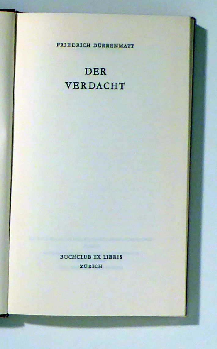 Zch.: Ex Libris, 1962. 155, [1] S., Einband: roter Or.Ln. Format: 8°. Lizenzausgabe der Erstausgabe für den Buchclub Ex Libris, das Original erschien bei Benzinger