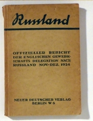 Offizieller Bericht der englischen Gewerkschaftsdelegation nach Russland und dem Kaukasus im November und Dezember 1924. 3. Auflage; 11.-15. Tsd.. Bln.: Neuer Deutscher Verlag, 1925. XXXVIII, 303, [1] S., mit s/w-Abbildungen nach Fotografien, Tafeln und Tabellen sowie 2 mehrfach gefalteten Karten. Einband: Original-Broschur. Format: 8°. Erstausgabe.