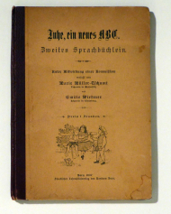 Zweites Sprachbüchlein. Unter Mitwirkung einer Kommission verfasst. Bern: Staatlicher Lehrmittelverlag des Kantons Bern, 1907. VII, 117 S., mit Deckelvigntte, Titelvignette (wiederholt), und zahlreichen mehrfarbigen und s/w-Illusttrationen. Einband: Original-Halbleinwand. Format: 8°. Obligatorisches Lehrmittel für das zweite Schuljahr im Kanton Bern, gedruckt in Fraktur