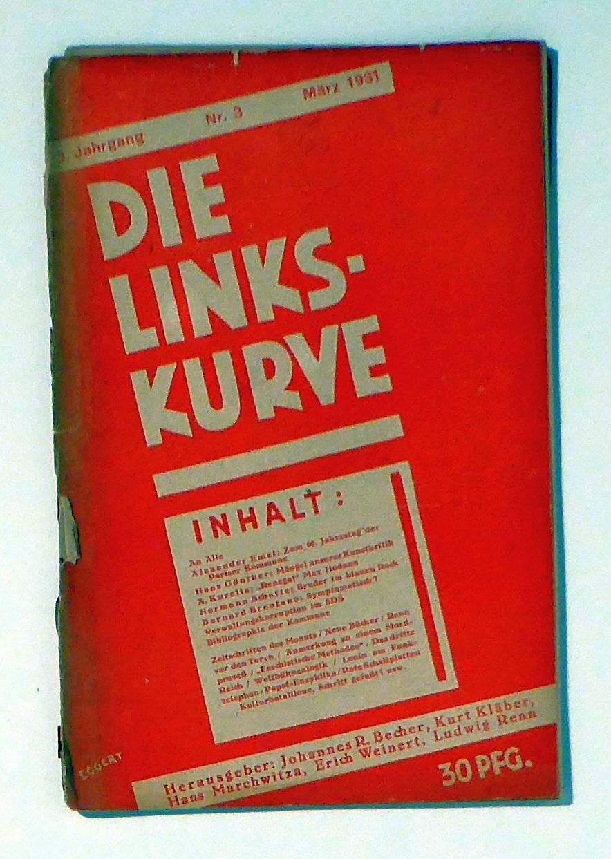 (Im Auftrag des Bundes proletarisch-revolutionärer Schriftsteller) hrsg. Johannes R. Becher, Kurt Kläber, Hans Marchwitza, Erich Weinert, Ludwig Renn. Bln.: Internationaler Arbeiterverlag, 1931. 32 S., Einband: Or.kt. Format: 8°. Reihe: Die Linkskurve, 3. Jahrgang, Nr. 3, März 1931.