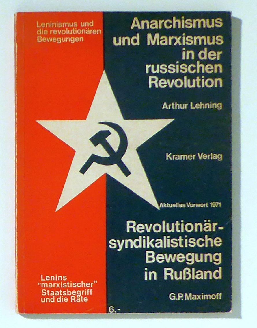 Revolutionär-syndikalistische Bewegung in Russland. 2. Auflage. Bln.: Karin Kramer, 1971. 146 S., Einband: Original-Broschur. Format: 8°. Neudruck der beiden Aufsätze von Arthur (Müller) Lehning (1929/30) und Grigorij P. Maximov (1926), mit einem aktualisierten Vrowort von Al Lehning zu dieser Ausgabe (S. I-XIV)
