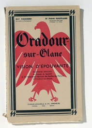Vision d'épouvante. Ouvrage officiel du Comité du Souvenir et de l'Association Nationale des Familles des Martyrs d'Oradour-sur-Glane. Limoges; Paris; Nancy: Charles-Lavauzelle, 1945. 206 S., mit zahlreichen s/w-Abbildungen nach Fotografien sowie mit einer vollständigen Liste der Opfer und weiteren Tabellen. Einband: Original broschiert. Format: gr.8°. Erstausgabe. Memorial für das von der SS am 10. Juni 1944 vernichtete Dorf Oradour-sur-Glane und dessen 583 ermordeten Bewohner