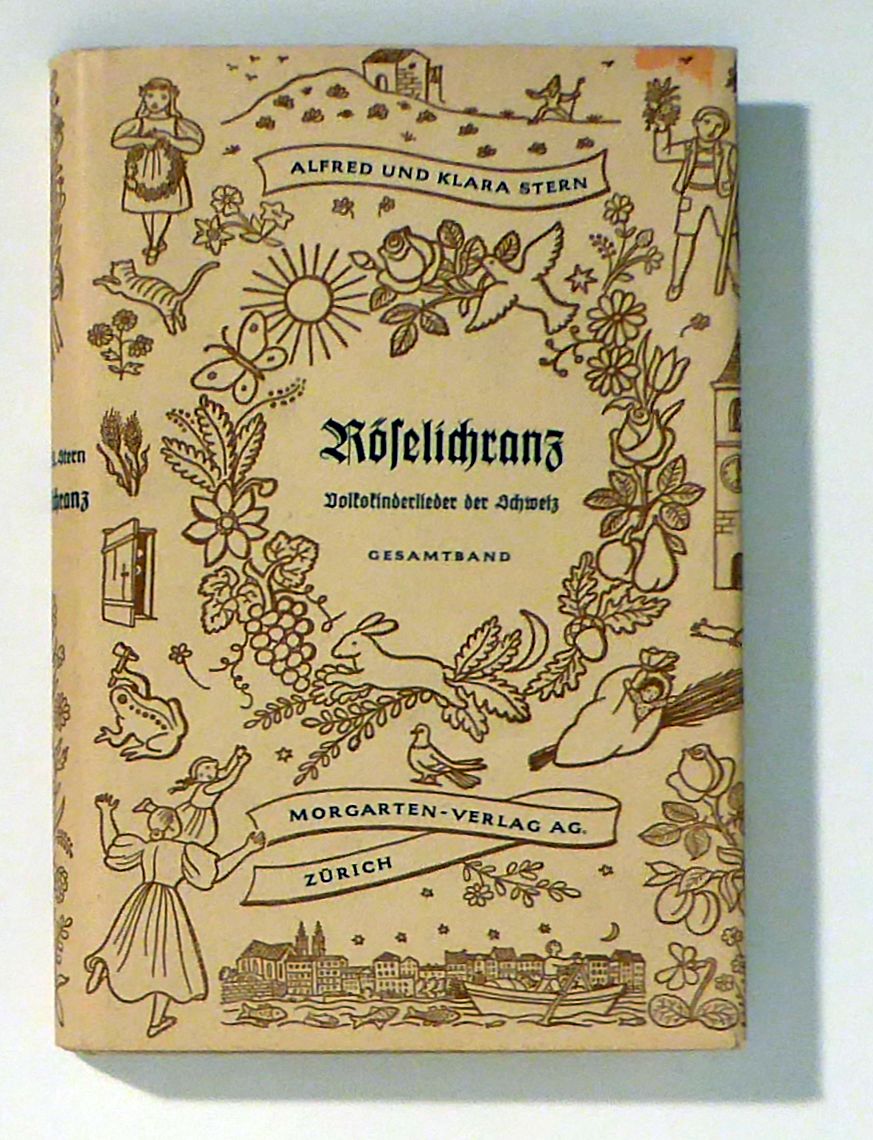 Volkskinderlieder der Schweiz. Mit Bildern von Berta Tappolet. 2. Auflage. Zch.: Morgarten, 1942. 210 S., Mit zahlreichen s/w Illustrationen nach Zeichnungen von Berta Tappolet. Einband: Original-Leinwand mit Schutzumschlag. Format: 8°. Schweizerdeutsche Lieder mit Musiknoten