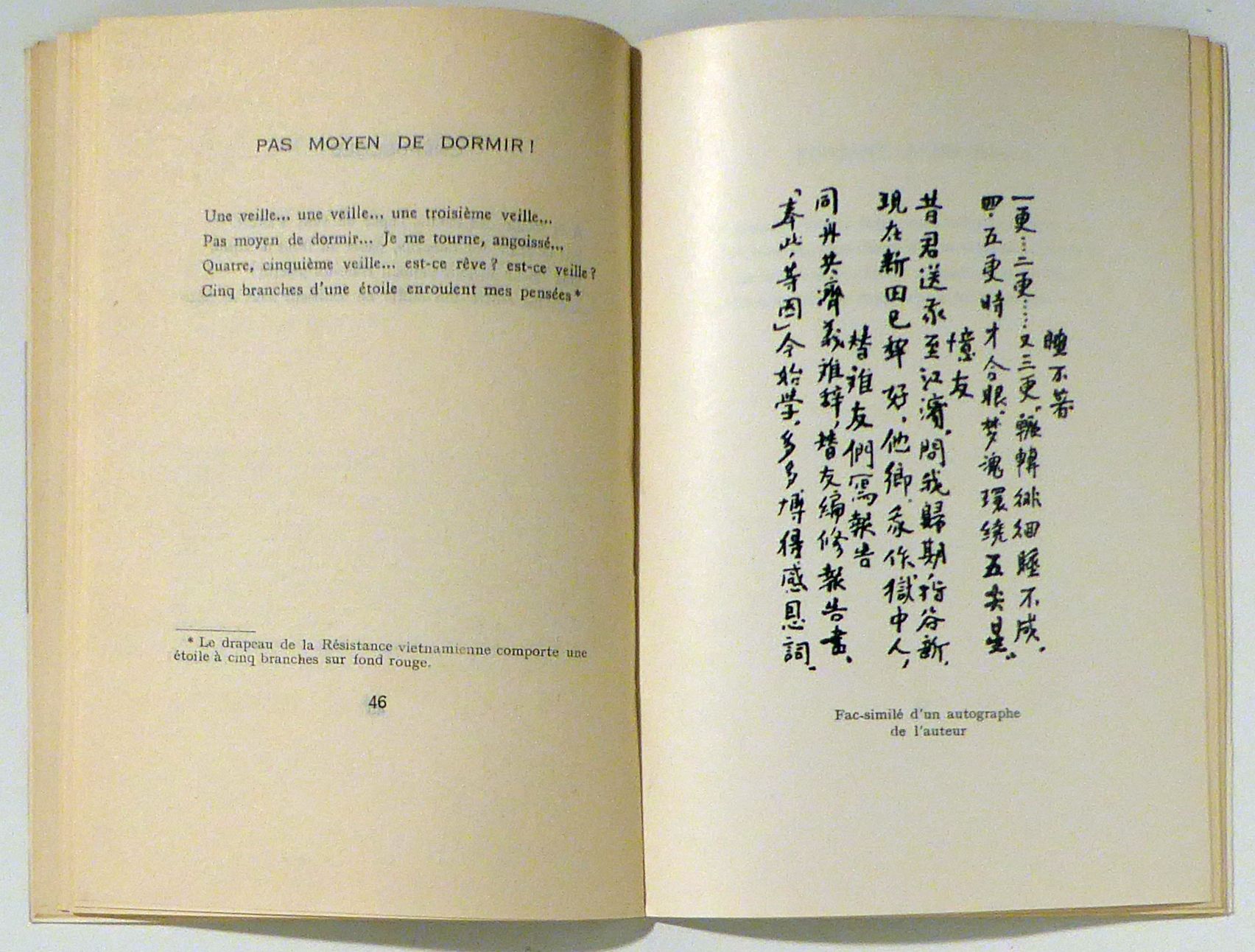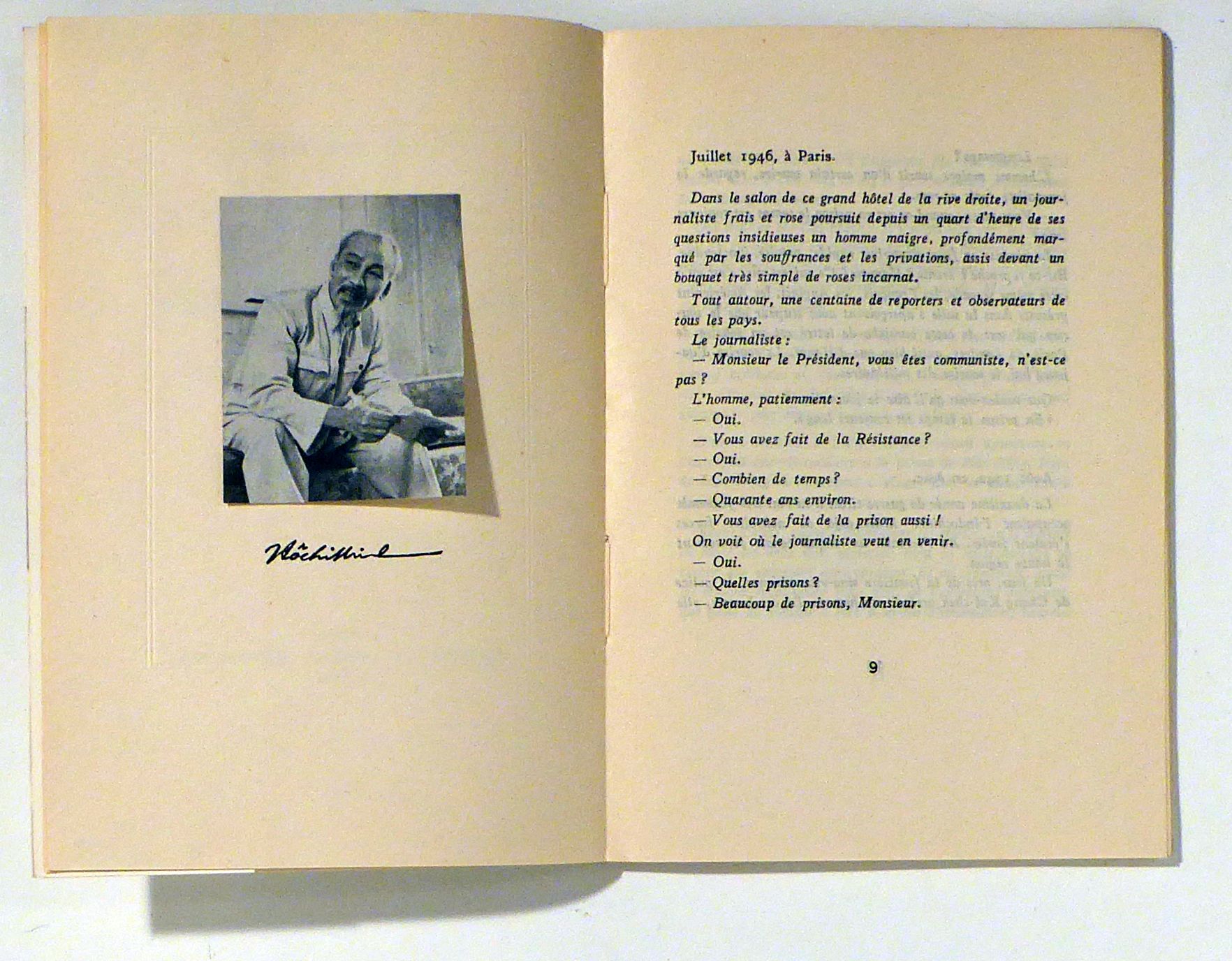 (Fragments) Traduit et présenté par Phan Nhuan. Troisième édition. Hanoi: Editions en langues étrangères, 1966. 79, [2] S., mit einem montierten Foto-Porträt von Ho chi minh gegenüber der ersten Textseite und einer Tafel mit einem Faksimile eines von Ho chi minh geschriebenen Textes. Einband: Original-Broschur. Format: 8°. Noch zu Lebzeiten erschienene Ausgabe