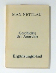 Ergänzungsband. o. O.: o. N., [um 1984]. Seiten nicht durchgehend nummeriert, Einband: Original-Broschur. Format: 8°. Mit einem Nachruf auf Nettlau von Arthur Lehning (in Englisch), biographischen und bibliographischen Daten zu Nettlau sowie einem Personen- und Periodicaregister zum Werk
