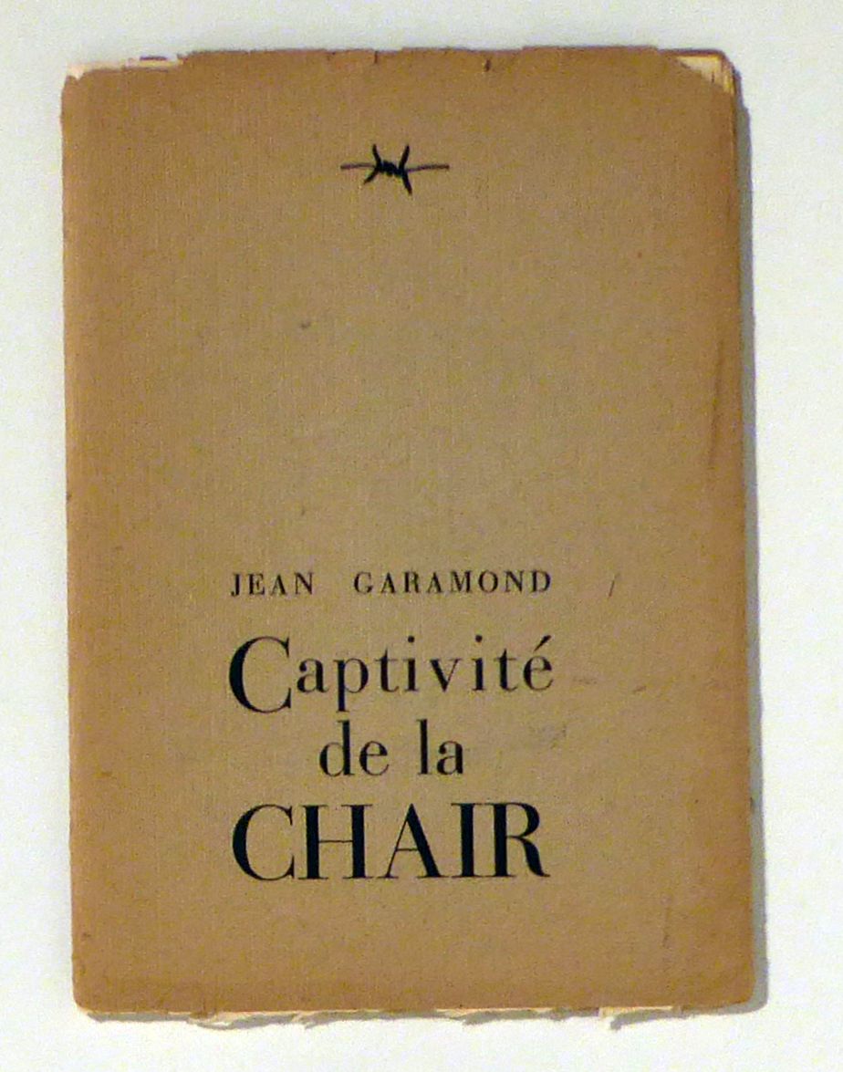 Paris: La Presse à main, 1947. [20] S., mit 1 Vignette - Drucker an der Handpresse - im Kolophon und einer Vignette - Stacheldraht - auf dem Umschlag und auf jeder Seite. Einband: Or.kt., lose Bogen, mit Schutzumschlag. Format: 4°. Erstausgabe. Coron 249. Nummerierte Ausgabe auf vélin du Marais. Eines der 25 von Guy Lévis Mano im Kolophon eigenhändig signierten und nummerierten Exemplare. Das Exemplar "U". Darüber hinaus gab es noch 125 arabisch nummerierte Exemplare. Die Gesamtauflage beträgt 150 nummerierte Exemplare. Titel im Impressum "Captivité de la verge". Nicht geheftet, 5 bedruckte Bogen, eingelegt in einem nichtbedruckten Bogen, in einem bedruckten grauern Umschlag. Äusserst selten