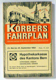 Lausanne: Kursbuch, 1982. 240 S., mit einer schmematischen Karte des Schweizer Eisenbahnnetzes. Einband: Original broschiert. Format: kl. 8°. Reihe: Körbers Fahrplan, Sommer 1982.
