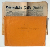 Nr. 1, 12. November 1918 - Nr. 5, 15. November 1918. Zch.: NZZ, 1918. 5 Nummern, 1x2 S., 4x4 S., Einband: ungebunden. Format: 2°. Aus Anlass des Schweizerischen Landesstreiks von der Redaktion herausgegeben. Alle erschienenen Nummern. Erklärung der Redaktion: "Die bürgerliche Presse ist ausser Betrieb gesetzt worden. Die Pressfreiheit existiert nur für das 'Volksrecht'. Es nützt sie aus zu tendenziöser Berichterstattung. Die zürcherische Buchdruckervereinigung, im Benehmen mit den bürgerlichen Parteien der Stadt und des Kantons, mit sämtlichen gewerblichen und industriellen Verbänden, auf den dringenden Wunsch von Bevölkerung und Behörden , hat beschlossen, für die Herausgabe eines Blattes 'bürgerliche Presse Zürichs' besorgt zu sein. Die technische Arbeit ist ausschliesslich den Prinzipalen zu verdanken. Redaktion der N.Z.Z." Von Nummer 2 nur drei Seiten bedruckt