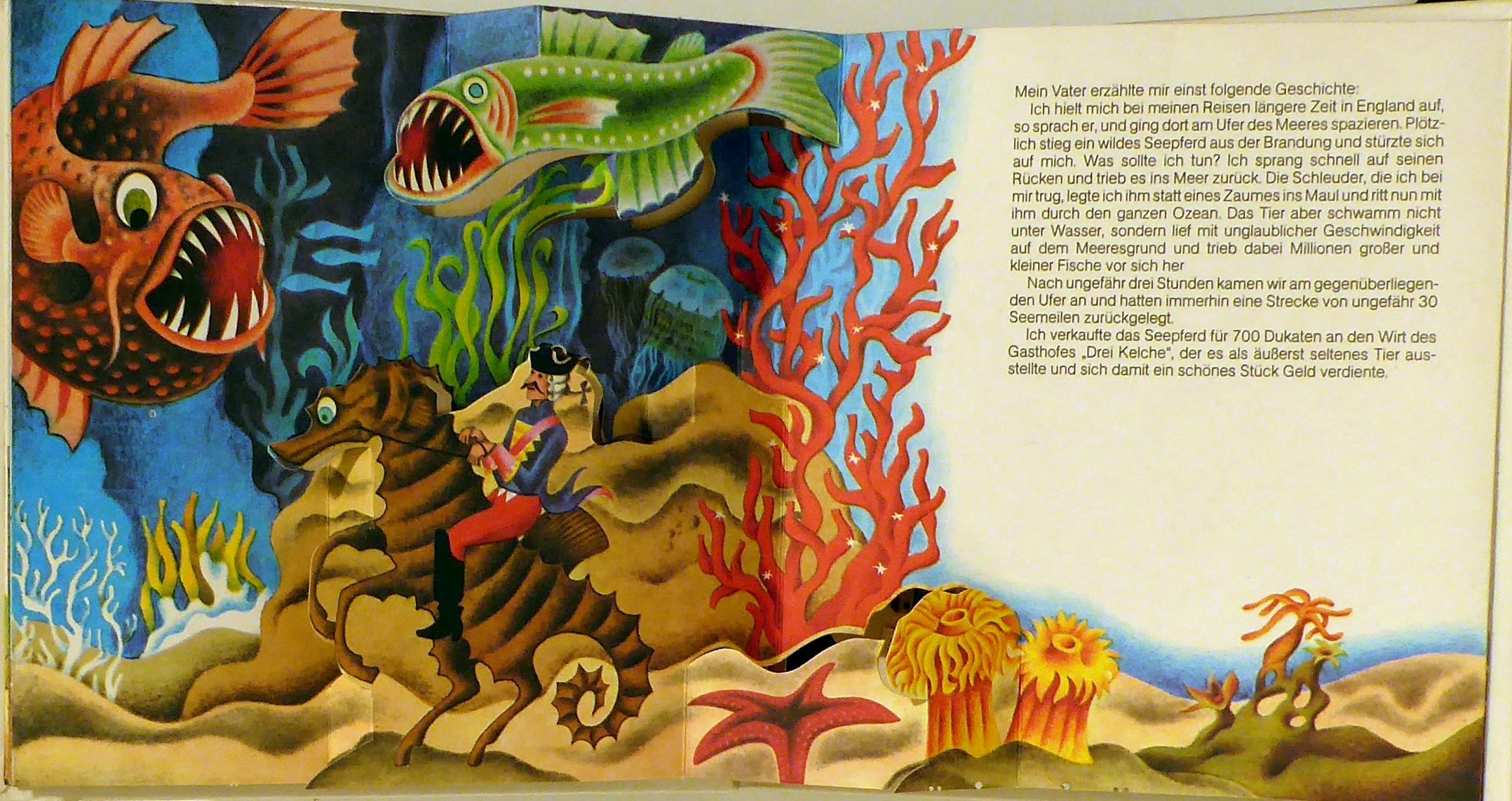 Objekt, Schlagwörter, Zeit, Sprache, Personen: Buch: Bilderbücher für Kinder, Münchhausen, Münchhausiana, Bewegliches Bilderbuch; 20. Jahrhundert; Deutsch; Pavlin, Jiri / Seda, Gustav