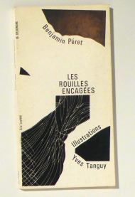 Illustrations d'Yves Tanguy. Paris: Eric Losfeld, 1970. 74, [5] S., Couverture de Pierre Faucheux. Fragments du "Grand Verre" de Marcel Duchamp, brisé et mis à nu. Einband: Or.kt. Format: 8°. Reihe: Le Désordre, 3.