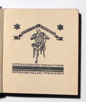 Objekt, Schlagwörter, Zeit, Sprache, Personen: Buch: Illustrierte Bücher, Erzählende Literatur in Übersetzung, Münchhausen, Münchhausiana, Holzschnitt, Holzstich; 20. Jahrhundert, 18. Jahrhundert; Deutsch, Englisch; Rössing, Karl