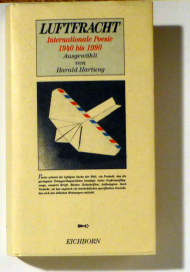 Internationale Poesie 1940 bis 1990. Ausgewählt von Hans Hartung. Frankfurt: Eichborn, 1991. 453, [9 S., Einband: Original-Pappband, mit Schutzumschlag. Format: gr.8°. Reihe: Achzigster Band der Anderen Bibliothek.