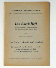 mit dem erstmailigen Wiederabdruck der drei frühesten Aufsätze von Leo Baeck, sowie von Hermann Levin Goldschmidt: Leo Baeck - Beispiel und Botschaft. Zch.: Jüdisches Lehrhaus, 1959. 35 S., Einband: Original-Broschur. Format: 8°.