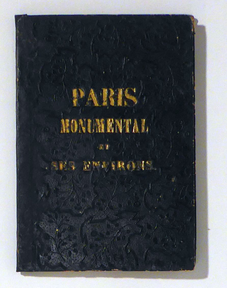 E. Grant del. Buland, sc.. Paris: Imprimérie Drouart, [1855]. 60 x30 cm (bxh); gefaltet 11x16 cm, Einband: Original-Pappband. Format: kl.8°. Plan der Stadt Paris, eingebunden in eine Pappmappe mit tintenschwarzen und reich blindgeprägten Überzugspapieren. Der Plan reicht vom Bois de Vicennes im Norden bis nach Saint Cloud im Süden und von St. Ouen im Westen zu Mont Rouge im Osten. In Aufsicht und detailreich eingezeichnet die wichtigsten Bauten und übrigen Sehenswürdigkeiten. Von den Strassen sind ordnend lediglich die wichtigsten eingezeichnet und auch dies nur rudimentär. Sehr attraktiv