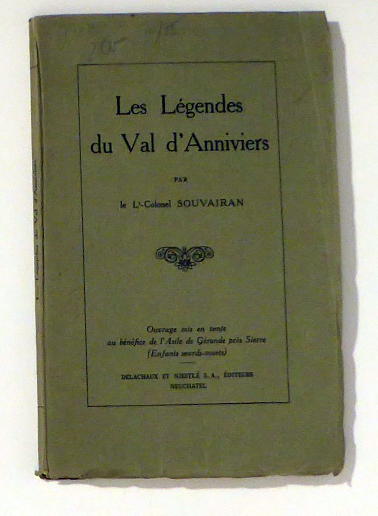 Ouvrage mis en vente au bénéfice de l'Asyle de Géronde près Sierre (Enfants sourds-muets). Neuchâtel: Delachaux & Niestlé, 1918. 76, [1] S., Einband: französische Broschur, nicht beschnitten. Format: kl.8°. Erstausgabe. Volkslegenden und Sagen aus dem Walliser Val d'Anniviers