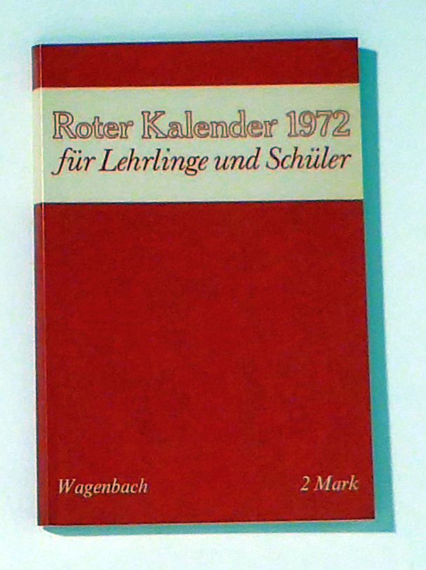 Berlin: Wagenbach, 1972. 111, [17] S., mit zahlreichen Illustrationen. Einband: rote Original-Broschur. Format: kl.8°. Kalendarium mit zahlreichen Textbeilagen