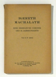 Eine hebräische Chronik des 18. Jahrhunderts. [Prag]: [Taussig & Taussig], 1930. 110 S., Einband: Original-Broschur. Format: gr.8°. Sonderabdruck aus dem Jahrbuch der Gesellschaft für Geschichte der Juden in der Čechoslowakischen Republik ;II, 1930