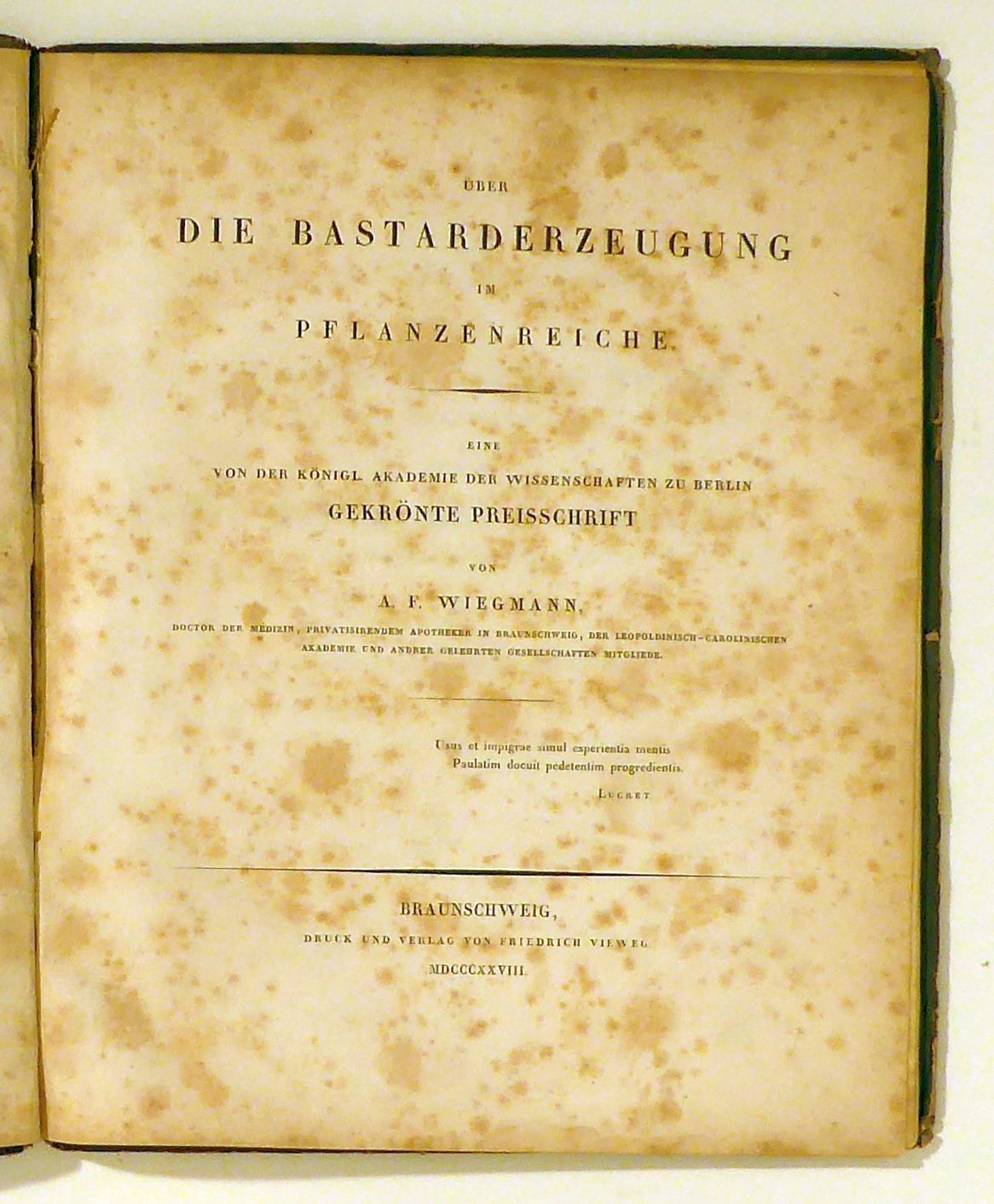 Eine von der Königl. Akademie der Wissenschaften zu Berlin gekrönte Preisschrift. Braunschweig: Vieweg, 1828. XII, 40 S., 1 Tafel, mit einer einmal gefalteten Farbtafel. Einband: Pappband der Zeit. Format: 4°.
