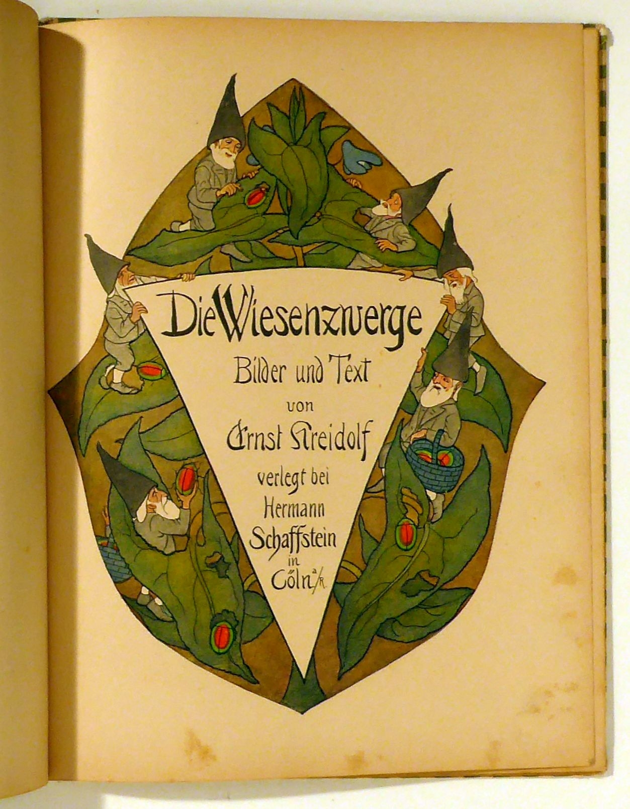 Bilder und Text von Ernst Kreidolf. Cöln: Schaffstein, [1915]. 12 Bll., mit 13 ganzseitigen farbigen Illustrationen. Einband: Original-Pappband. Format: 4°. Hess, Wachter, S 26, "Neue Ausgabe" [um 1915]: Verlagsname "Herrmann Schaffstein", grosse Fraktur, ohne gelbe Verlagsvignette, ohne Verlagsanzeigen, ohne Leisten und Schlussvignette