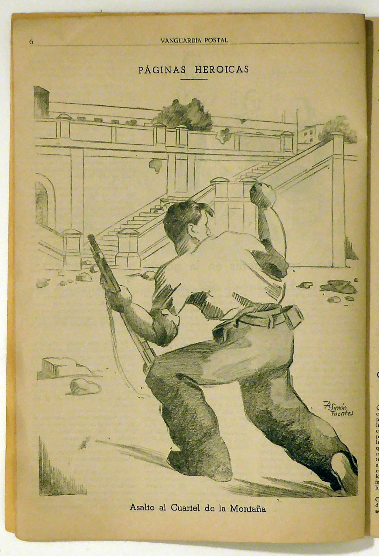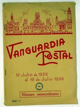 Organo del Sindicato de Empleados de Correos UGT. Barcelona: Sindicato de Empleados de Correos UGT, 1938. 22, [2] S., mit zahlreichen Abbildungen nach Fotografien sowie Karikaturen. Einband: Original-Broschur, klammergeheftet. Format: 3°. Reihe: Vanguardia Postal, Año IV, Num.30, 19 de julio 1938.
