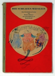 Eine Geschichte in Versen von Walter Widmer mit vielen Bildern von Ruedi Barth. Bern-Bümpliz: Züst, 1944. (24) S., mit blauen Umschlagillustrationen auf weissem und rotem Grund, Vignette auf Vorsatz und Titel sowie zahlreichen dreifarbigen Illustrationen nach Zeichnungen von Ruedi (Ruodi) Barth. Einband: Or.kt. mit Leinenrücken. Format: 4°. Erstausgabe. Sammlung Hürlimann 52. - Rutschmann S. 5 und 859. Die Illustrationen wurden von den Original-Linolschnitten gedruckt