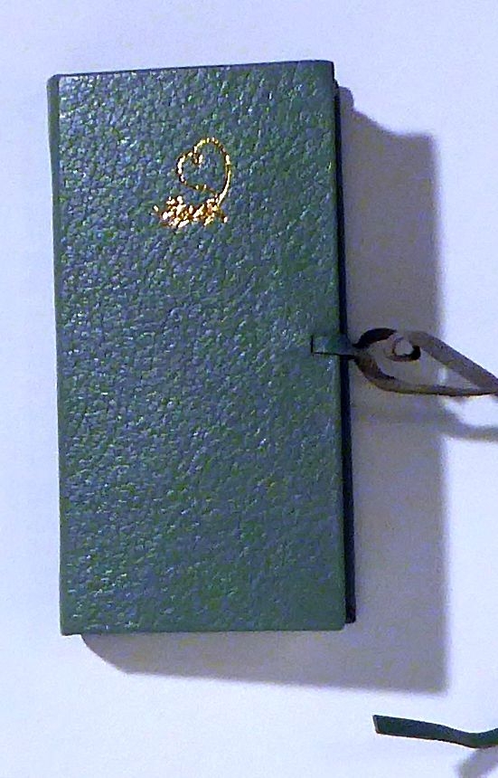 Ein amouröses Allerlei. Bln.: Neues Leben, 1987. [42] S., mit farbigen Illustrationen nach Zeichnungen von Egberth Herfurth. Einband: Grüner Ledereinband mit Schliessbändchen. Format: 12° (6x12 cm). Aufwendig mit Unterstützung des Instituts für Buchgestaltung Leipzig hergestelltes Bändchen. Illustrationen werden beim Öffnen der Seiten sichtbar, wenn die Klappen in der Mitte aufgehen. Zusammengestellt und mit einer Nachbemerkung versehen von Elmar Faber