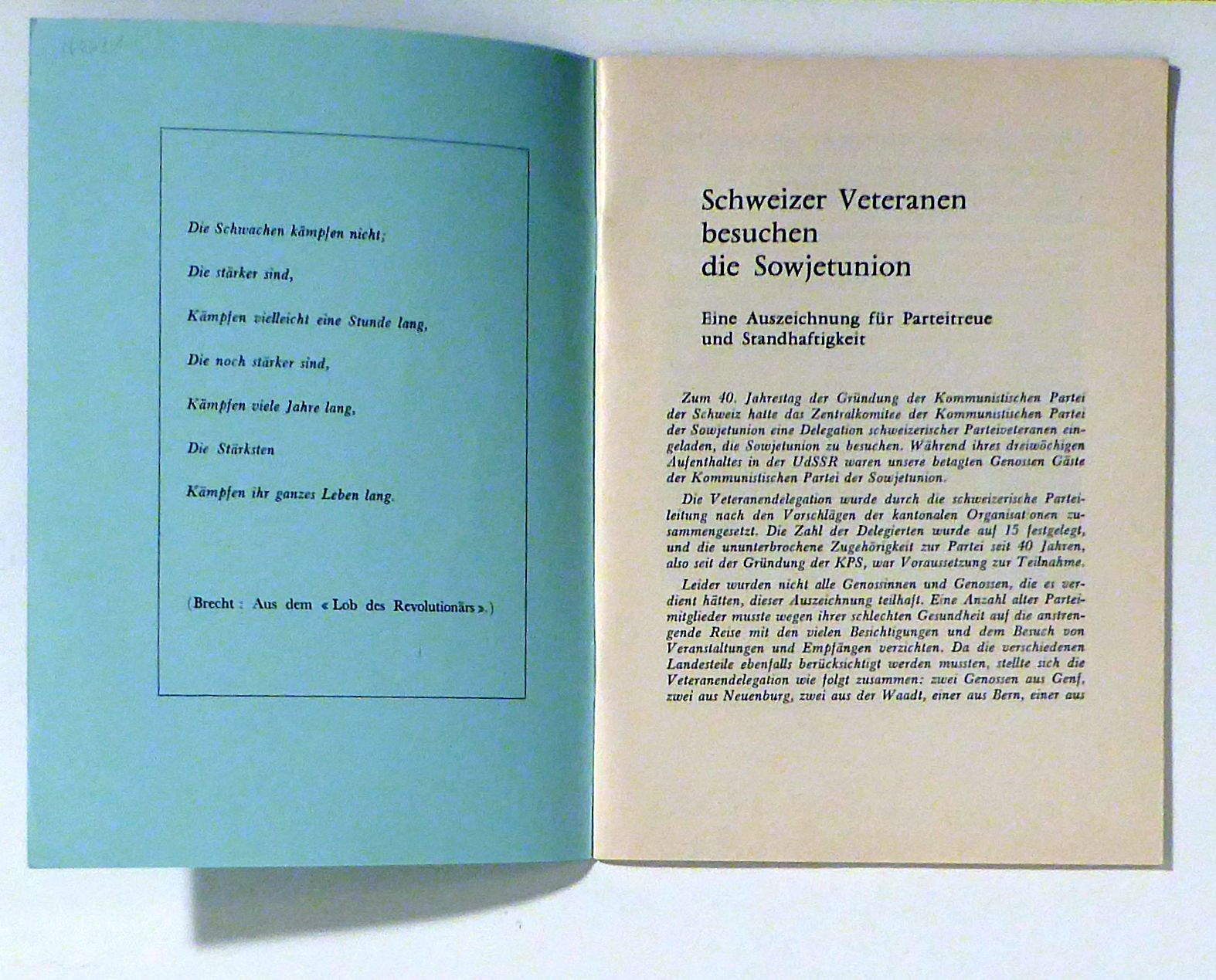 Zch.: Literaturvertrieb, 1962. 47 S., Einband: Original-Broschur. Format: 8°. Mitarbeit am Reisebericht unter anderen durch Armand Bodenmann, Jakob Jäggin, Richard Müller, Marino Bodenmann