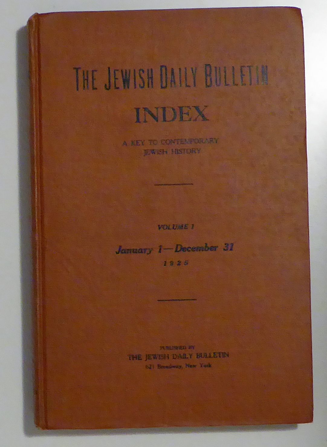 A key to contemporary Jewish history. Vol. 1. No. 1. January 1-December 31 1925. New York: The Jewish Daily Bulletin, 1926. 286 S., Einband: Original-Leinwand. Format: 4°.
