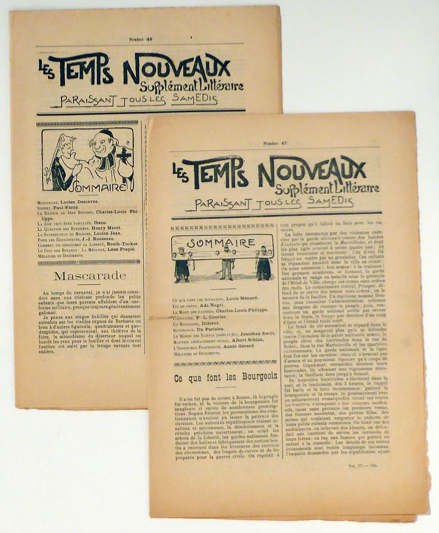 Supplément Littéraire. Paris: Les temps nouveaux, o.J.. 2 Nummern, Einband: lose Bogen. Format: 4°. Reihe: Les Temps Nouveaux, supplément littéraire, Vol. IV, S. 809-824.