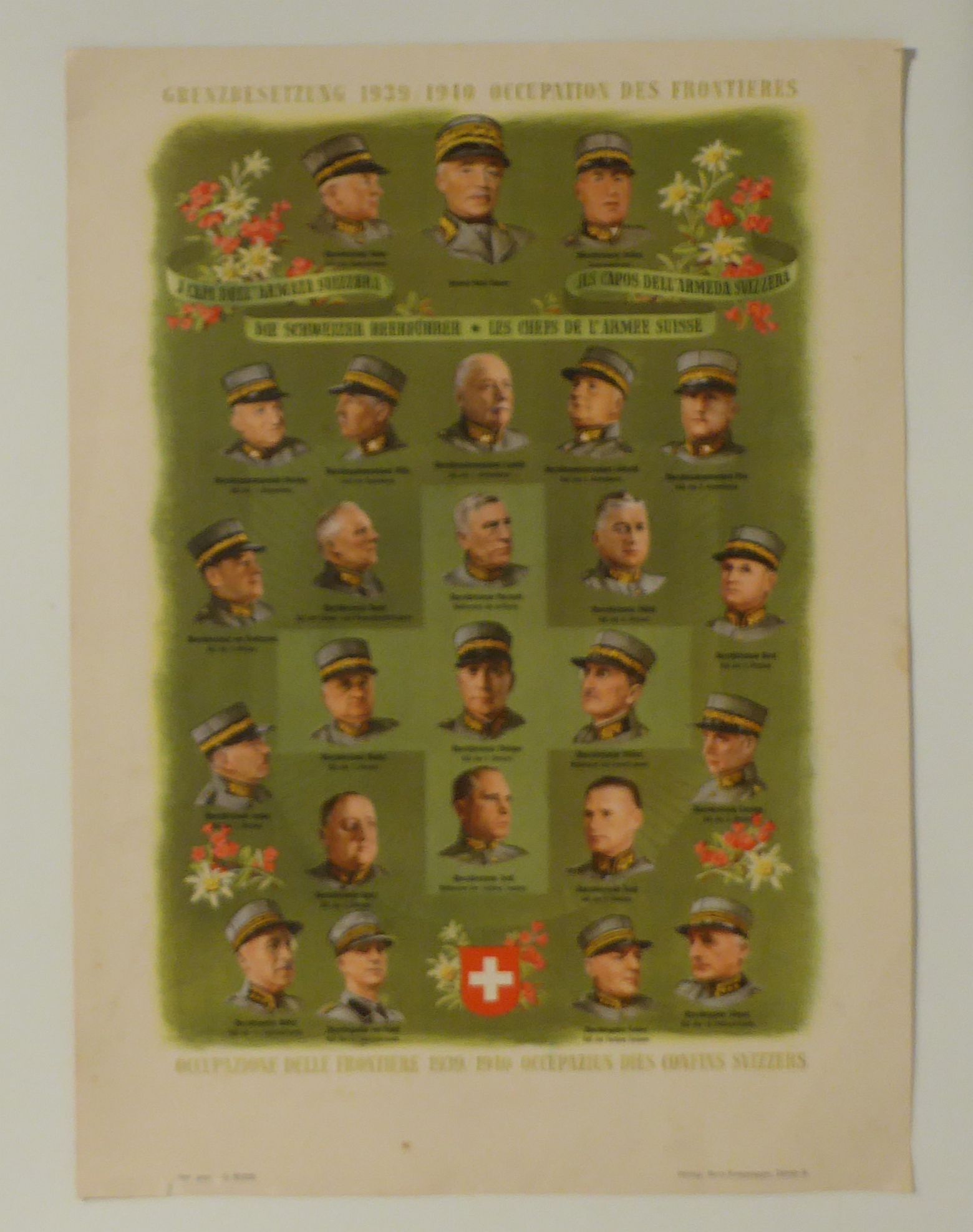 Mit Beiträgen von H[ans] Hausamann (Gründer des "Büro Ha") und anderen hohen Offizieren sowie einer Humorseite mit Zeichnungen von Hans Schaad. Lose beigelegt ein viersprachiges farbiges Erinnerungsblatt zur Grenzbesetzung 1939/1940 mit Porträts der schweizerischen Heerführung