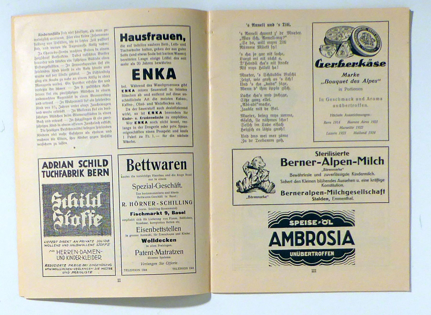 Zum 3. Jahrgang gehören offenbar die römisch nummerierten Seiten und zum 2. Jahrgang die Seiten 257-284. Auf den Seiten III und IV ein Gedicht von Elisabeth Thommen in Mundart "'s Anneli und 's Titti"; auf der Seite 257 ein Gedicht von Jakonb Job "Kinderhand". Als Redator wird im Impressum W[illibald] Klinke angegeben. Titelbild nach einer Fotografie von Camill Ruf, gedruckt in Fraktur