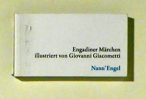 Engadiner Märchen, illustriert von Giovanni Giacometti. Chur: Rätisches Museum, o.J.. 40 Bltt., mit 40 mehrfarbigen Illustrationen. Einband: Original-Broschur. Format: 9 x 5 cm (bxh). Mini-Buch, unter Verwendung der Ausgabe von 1902/1903 von Gian Bundi, Engadiner Märchen, mit den Abbildungen auf einseitig bedruckten Seiten und einer einseitigen Zusammenfassung des Märchens