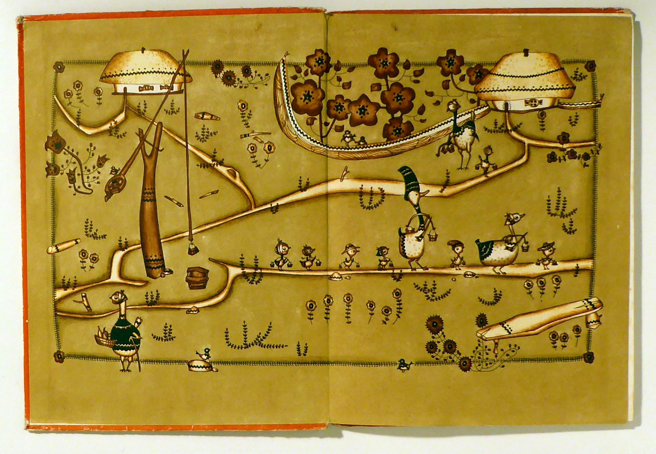 ukraïnski narodni pisenʹki ta kazka. Kiev: Veselka, 1975. 76, [4] S., mit zahlreichen ganzseitigen farbigen Illustrationen nach Zeichnungen von Volodimir Golozubov. Einband: Original-Pappband. Format: 4°. Volkstümliche Verse, Paralleltext ukrainisch - englisch. Ein Teil der Illustrationen wurde 1971 mit dem ersten Preis an der Biennale der Kinderbuchillustration ausgezeichnet