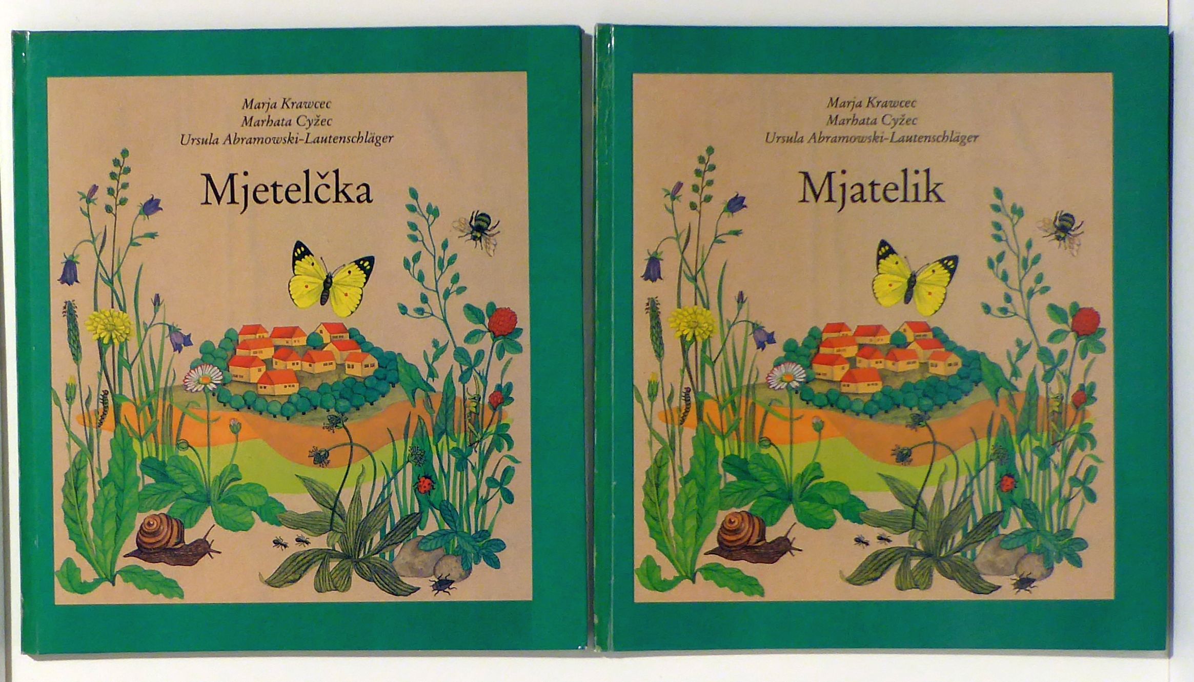 [2 Liederbücher, einmal in nieder- einmal in obersorbischer Sprache]. Bautzen: Domowina, 1984; 1989. 5 Bde., je 32 S., mit zahlreichen farbigen Illustrationen. Format: 4°. Text in beiden Bänden Marja Krawcec, Melodien Marhata Cyžec. Mit loser Beilage, 4 Blätter mit Liedtexten und Noten