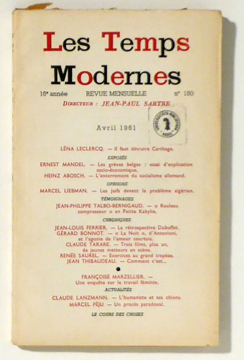 Revue Mensuelle. Directeur Jean Paul Sartre. Paris: Les Temps Modernes, 1961. [1249]-1448 p., Einband: französische Broschur. Format: 8°. Reihe: 16e année, Avril 1961, n° 180.