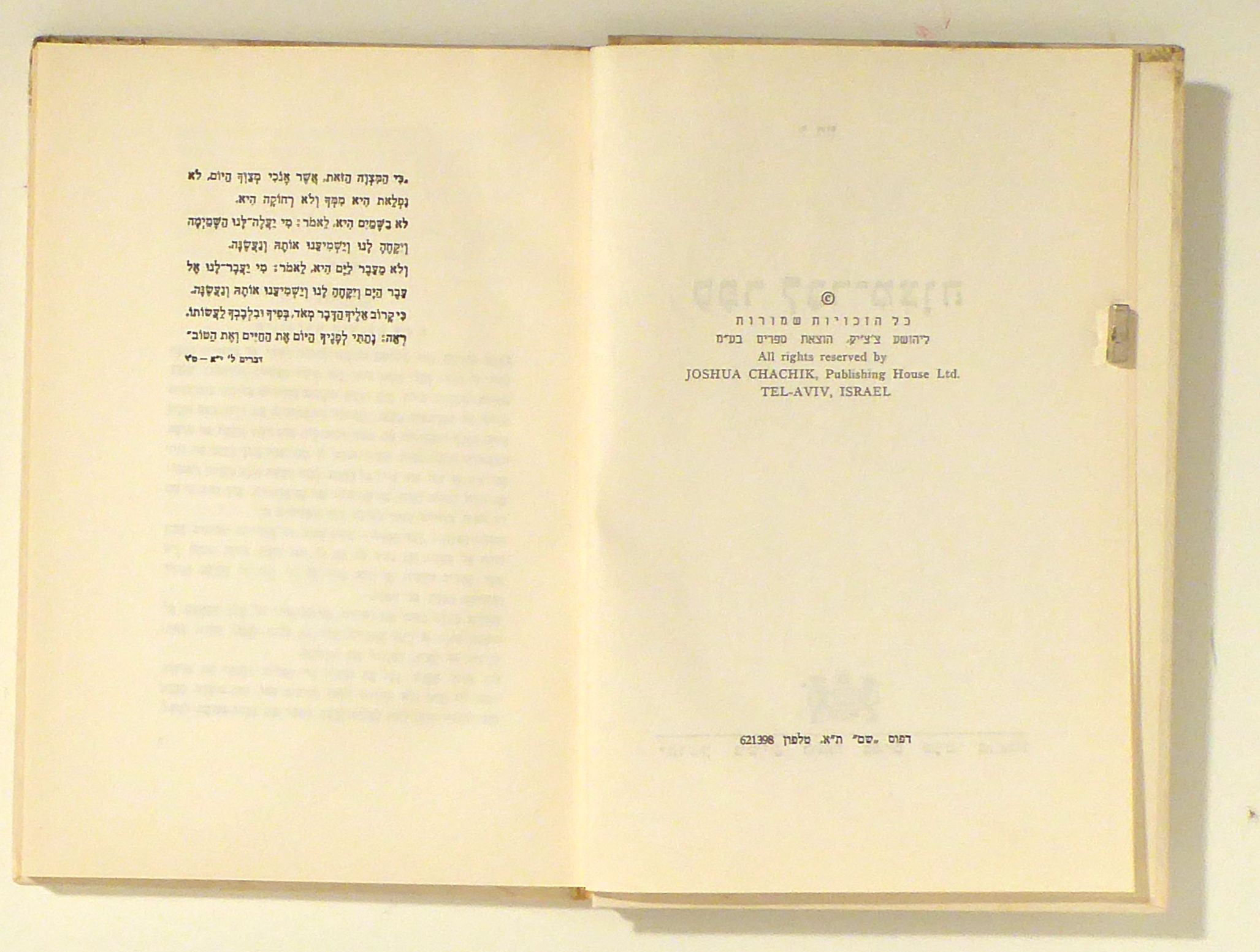 [Sefer lbar-mizvah]. Tel Aviv: Joshua Chachik, um 1960. 162 S., mit 4 Tafeln mit Illustrationen. Einband: Original-Halbleinwand in Schuber. Format: 8°. Religiös-philosophisches Lehrbuch in hebräischer Sprache zur Vorbereitung auf Bar-Mizvah