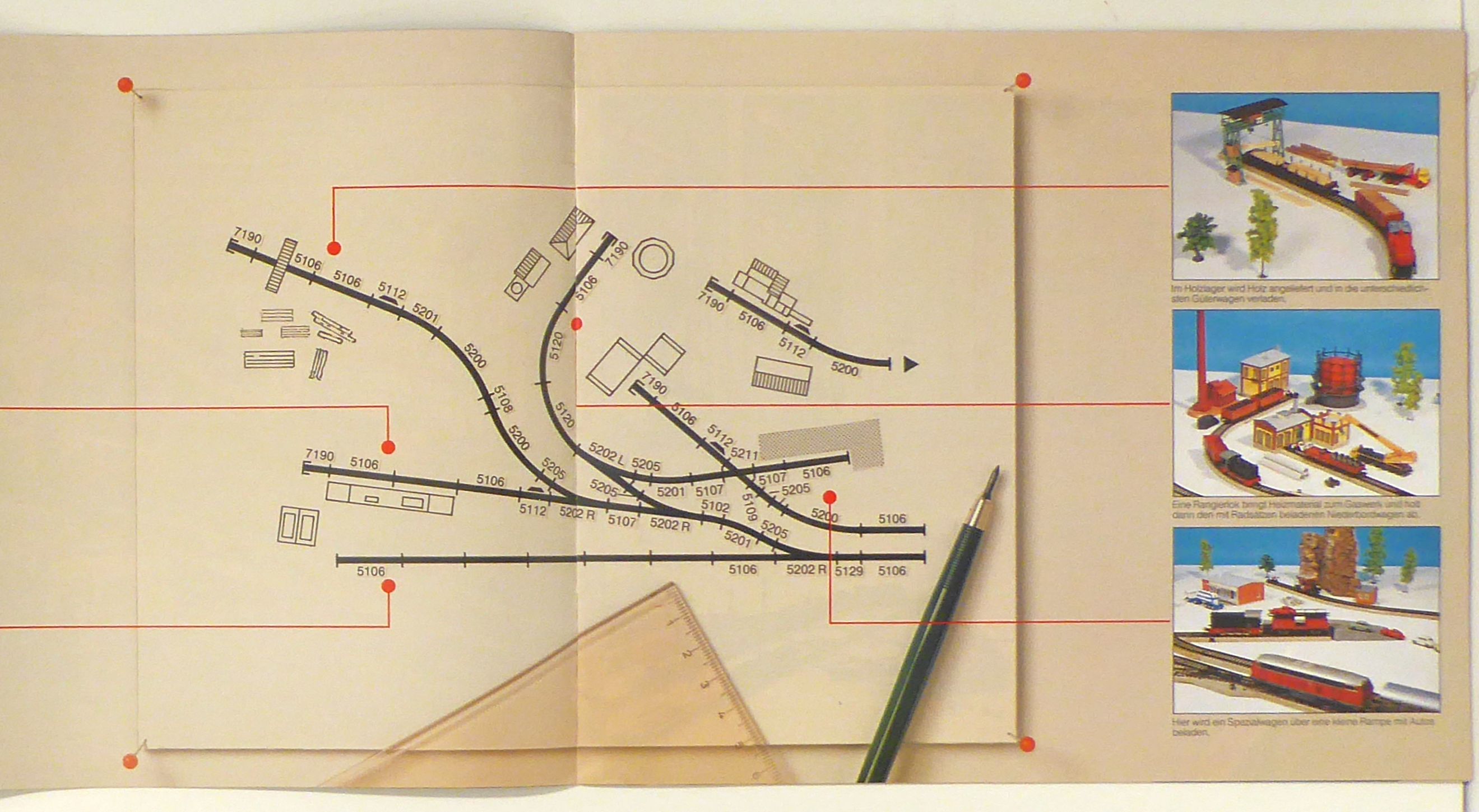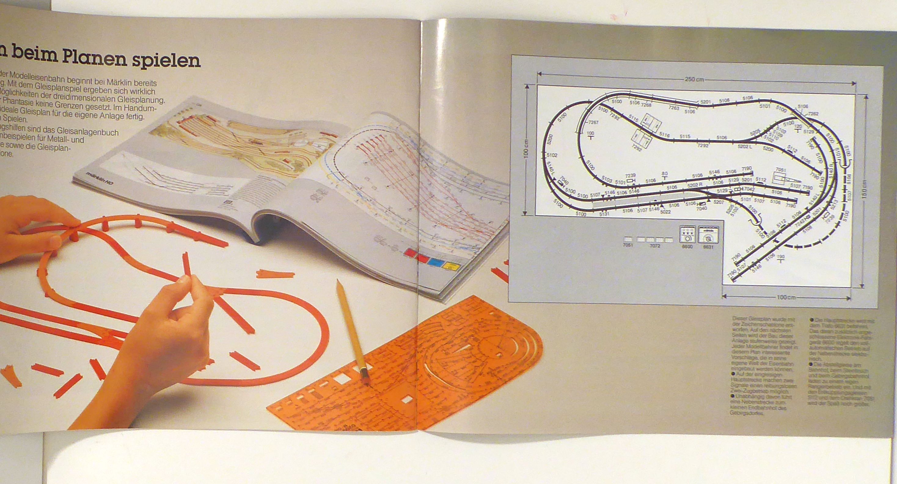 Göppingen: Märklin, 1983. [32] S., mit zahlreichen farbigen Abbildungen nach Fotografien sowie von Plänen. Einband: Original-Broschur, klammergeheftet. Format: gr.8°, quer. Mit Vorschlägen von einfachen bis anspruchsvollen Anlagen mit der H0-Spur mit Plänen und Angabe der dafür benötigten Teile