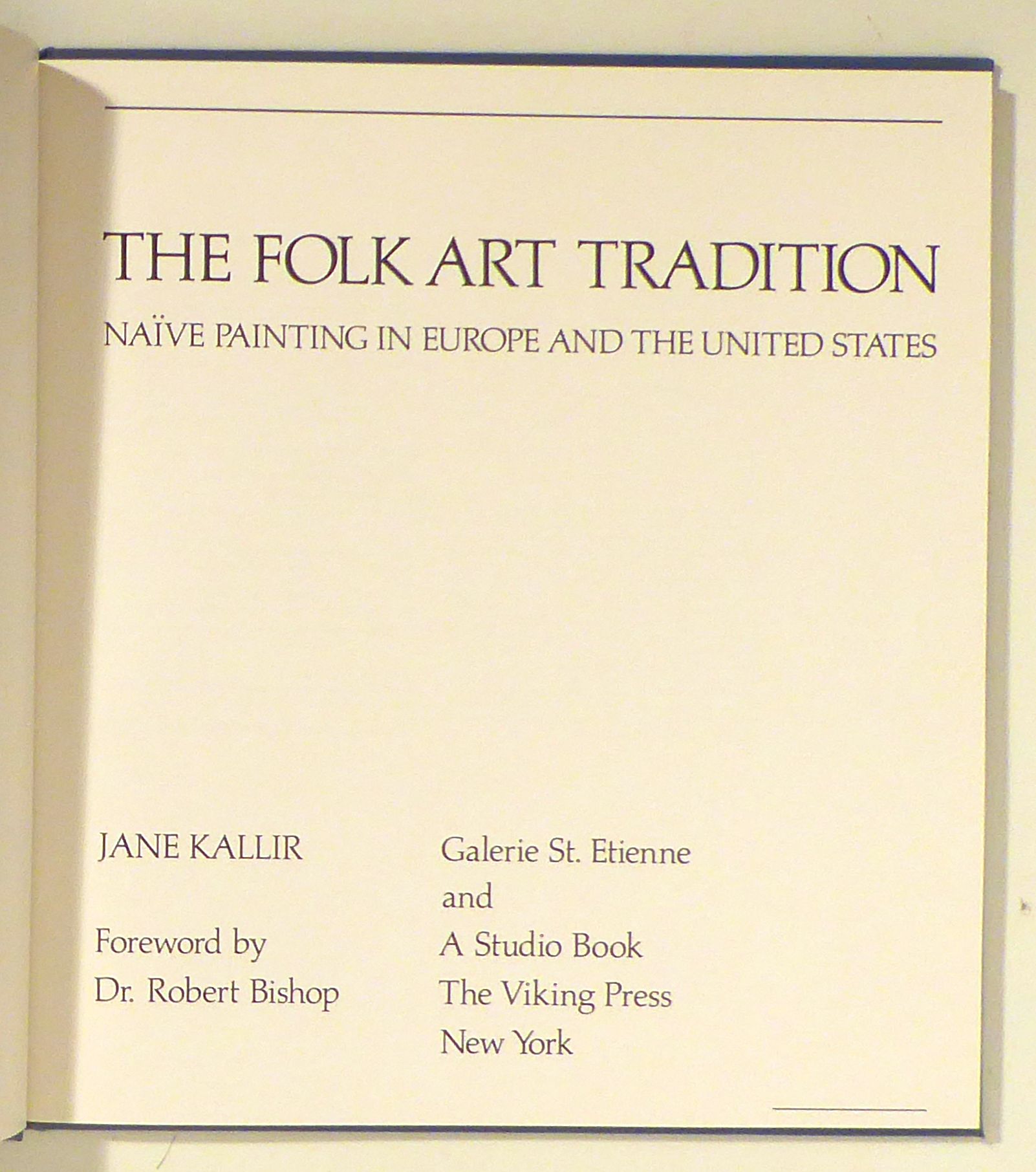 Naïve Painting in Europe and the United States. Forword by Robert Bishop. New York: Viking Press, 1982. 100 S., Einband: Original-Leinwand. Format: gr.8°. Gebundene Buchausgabe des Katalogs zu einer Ausstellung in der New Yorker Galierie St. Etienne. Mit zahlreichen s/w-Abbildungen sowie 29 ganzseitigen fabrigen Tafeln. Mit einem Text zur Geschichte der Naiven sowie kurzen Biographien der vertretenen und behandelten Künstler