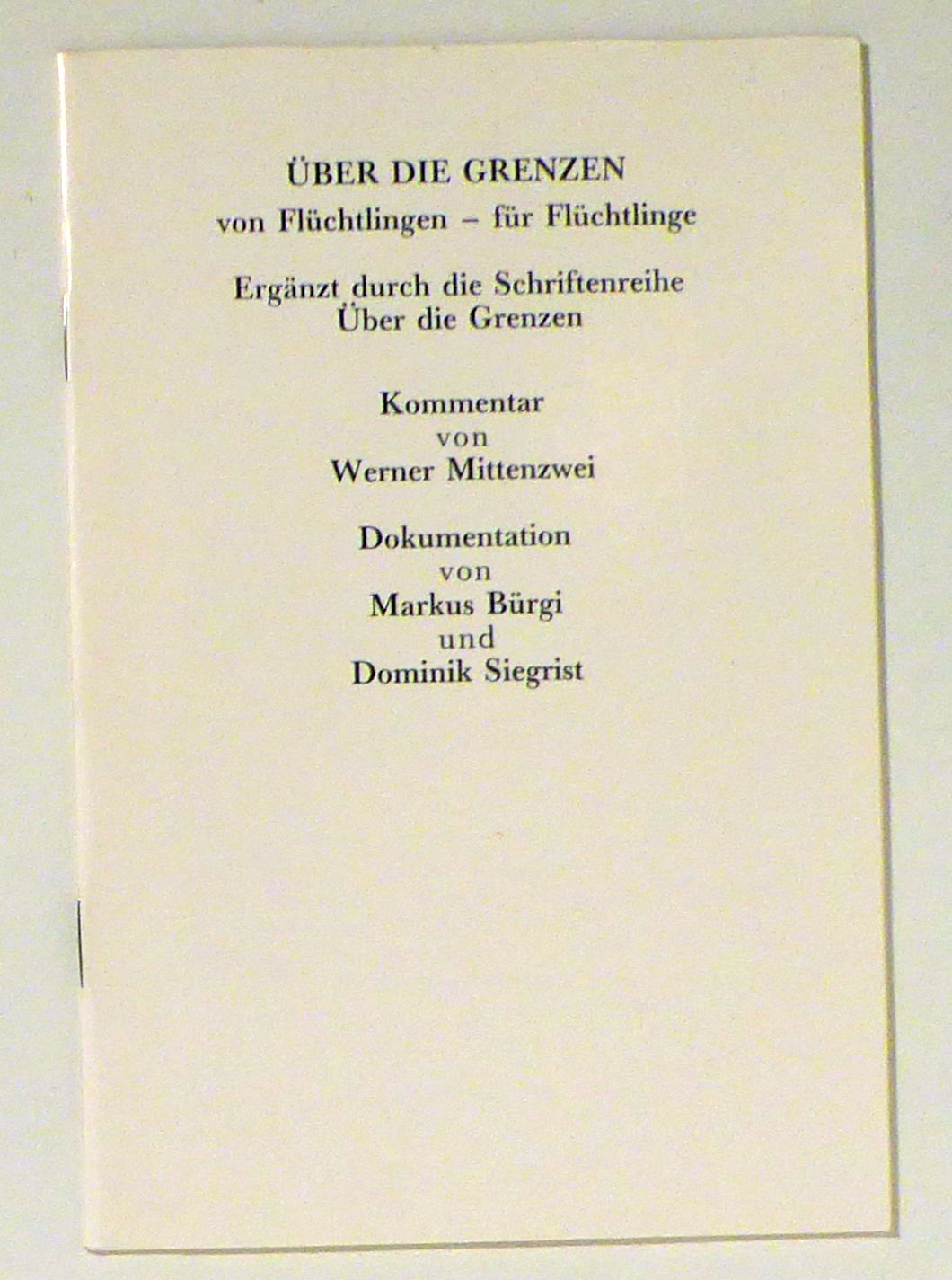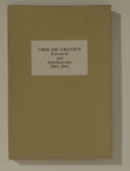 Die in der Schweiz erscheinende Exilzeitschrift "Über die Grenzen" wurde von einer Redaktionskommission von in schweizerischen Lagern lebenden Flüchtlingen und Emigranten unter Aufsicht der "Zentralleitung der Arbeitslager" und genehmigt von der schweizerischen Regierung (Bundesrat) herausgegeben. Neben "Internierten" arbeiteten daran auch zahlreiche Schweizer und nicht in Lagern lebende Flüchtlinge mit. Anschliessend an die in unregelmässigen Abständen erscheinenden Hefte der Zeitschrift erschienen ab 1945 auch noch 5 Hefte einer Schriftenreihe "Über die Grenzen". Zu den Mitarbeitern gehörten Jo Mihaly, Hans Mayer, Karl Ackermann, Hermann Adler, Else Lasker-Schüler, Jakob Haringer, Stephan Hermlin, Felix Kohn, Therese Giehse, Lisa Tetzner, Ernst Ginsberg, Wolfgang Heinz, Kurt Horwitz, Kurt Hirschfeld, Leopold Lindtberg, Teo Otto, Karl Paryla, Leonard Steckel, Oskar Wälterlin, Bruno Kaiser, Wilhelm Frank, Hans Erni, Jakob Pakziarc, Rudolf Engel, Otto Bachmann, Max Hunziker, Fritz Wotruba und zahlreiche andere. Gestaltet wurden die Hefte von Werner Saul, der auch zahlreiche, oft ganzseitige, Karrikaturen und Bildgeschichten zeichnete. - Die Zeitschrift wurde im Originalformat (24 x 32,5 cm) nachgedruckt, die fünf Hefte der Schriftenreihe etwas verkleinert. Sie befinden sich, zusammen mit einem Begleitheft mit dem Kommentar von Mittenzwei und der Dokumentation von Bürgi und Siegrist, in einem Schuber. Die Bibliographie wurde als Anhang zum Nachdruck der Zeitschrift gestellt. Vergleiche W. Mittenzwei, Exil in der Schweiz, S. 325-335 (Reclam)