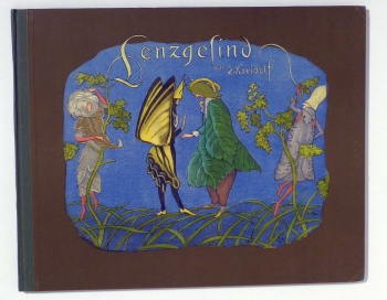 Kinderbilderbuch. Zch.: Rotapfel, 1926. [25] S., mit 12 mehrfarbigen lithographierten Tafeln, einem farbigen Einbandbild und einer farbigen Titelvignette. Einband: illustrierter Original-Halbleinwand mit Schutzumschlag in Schuber. Format: gr.8° quer. Erstausgabe. Hess, Wachter A9. Ein ausserordentlich schönes Exemplar. Mit einem, wie bei Rotapfel damals üblich, unbedrucktem Schutzumschlag und einem gewöhnlichen Pappschuber mit blau gestempeltem Titel, gedruckt in Fraktur