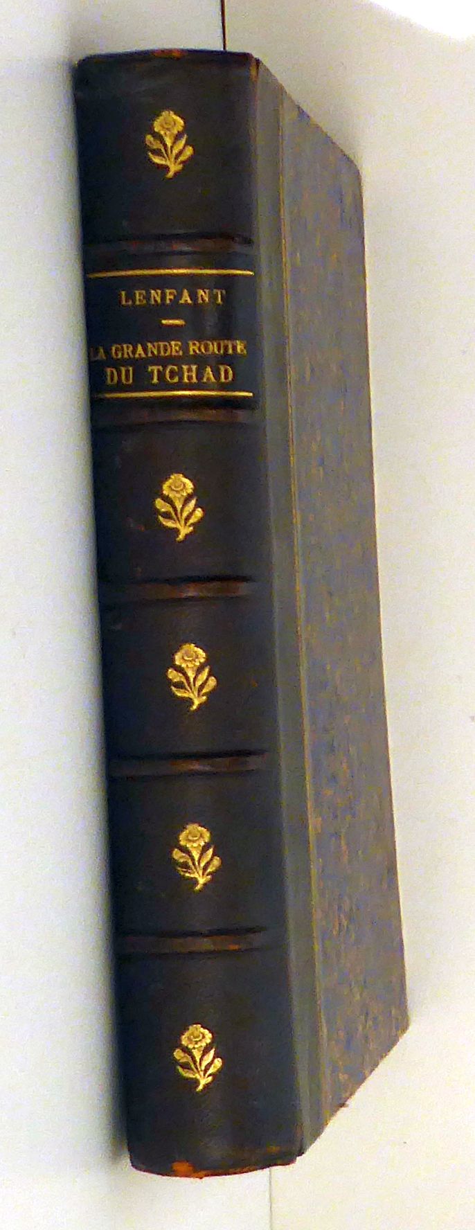 Mission de la société de géographie. Préface par Le Myre de Vilers, introduction de Maurice Albert. Paris: Hachette, 1905. XIV, (1), 285 S., mit zahlreichen s/w-Abbildungen nach Fotografien auf Tafeln und im Text sowie einer mehrfarbigen gefalteten Karte. Einband: Hldr. Format: gr.8°. Erstausgabe. Privater Halbleder-Einband mit erhöhten Bünden, goldgeprägtem Rückentitel., marmorierten Überzugpapieren und schweren marmorierten Vorsätzen. Auf der Karte ist die Route der Expedition Niger-Bénoué-Tchad eingetragen. Selten