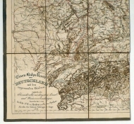 Bln.: Schropp, 1845. Einband: Einblatt. Format: 63 x 50.5 cm. Getönte Karte, in Kupfer gestochen von Charles Mare (Karte) und Guillaume Bembé (Schrift), auf Leinen in 18 Feldern montiert und gefaltet