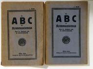 Populäre Erläuterung des Programms der Kommunistischen Partei Russlands (Bolschewiki). Wien: Verlag der Arbeiter-Buchhandlung, 1920. Bde., 126;180 S., Einband: Original-Broschur. Format: 8°. Auf dem Titelblatt mit der abweichenden Verlagsangabe "Im Verlage der Kommunistischen Partei Deutschösterreichs. Lose beigelegt der sehr seltene Korrekturzettel fürden ersten Band.