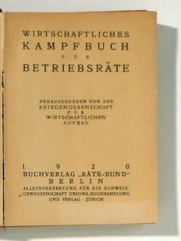 Hrsg, von der Rätegenossenschaft für wirtschaftlichen Aufbau. Bln.: Räte-Bund, 1920. 447, [24] S., mit einer emblematischen Deckelvignettemit zahlreichen Listen und Tabellen, davon 3 mehrfarbig und doppelblattgross. Einband: roter Original-Pappband. Format: 8°. Erstausgabe. Dem Andenken Gustav Landauers gewidmet. Mit Texten von Ernst Jakobi, Richard Oehring, Friedrich M. Minck Alfons Goldschmidt und anderen. Eher selten