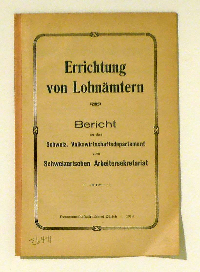 Bericht an das Schweiz.Volkswirtschaftsdepartement vom Schweiz. Arbeitersekretariat. Zch.: Genossenschaftsdruckerei, 1918. 31 S., Einband: Original-Broschur. Format: 8°.