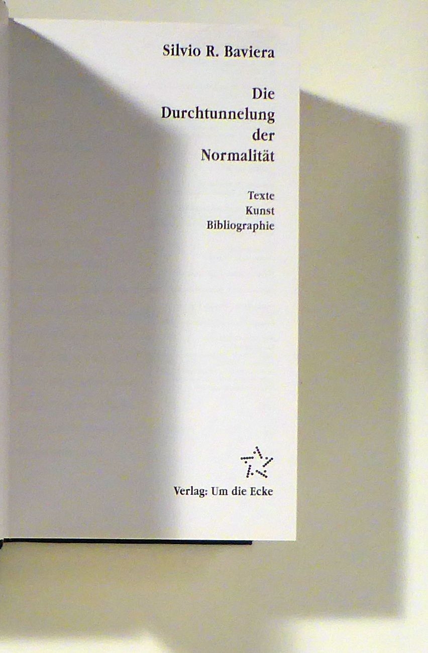 Texte Kunst Bibliographie. Erste Auflage. Zürich: Verlag um die Ecke, 1996. 1021, [2] S., mit zahlreichen teils mehrfarbigen Abbildungen. Einband: Original-Leinwand, mit Lesebändchen. Format: kl.8°. Erstausgabe. Veröffentlicht anlässlich der Ausstellung von Silvio R[ichard] Baviera vom 12. Dezember 1996 bis 26. Januar 1997 im Helmhaus in Zürich.Im April und Mai 1997 wurde die Ausstellung auch noch in Berlin gezeigt. Eine Schau der neuen Schweizer Kunst der zweiten Hälfte des 20. Jahrhunderts