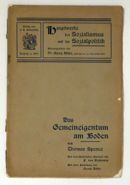 Aus dem Englischen übersetzt von F[ritz] von Eichmann. Mit einer Einleitung von Georg Adler. Lpz.: Hirschfeld, 1904. 31 S., Einband: Original-Broschur. Format: gr.8°. Reihe: Hauptwerke des Sozialismus und der Sozialpolitik, 1.