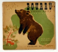 Erstausgabe. Ein "roman des betes", ein erzählendes Sachbilderbuch, nach dem Konzept, das der Gründer der Reihe "Père Castor", Paul Faucher, zusammen mit siner Frau Lida Durdikova in den 30er Jahren entwickelte. Der gute Druck und der broschierte Einband sind Ausdruck der Absicht , preiswerte Bilderbücher von hohem ästhetischen und pädagiogischern Anspruch herzustellen
